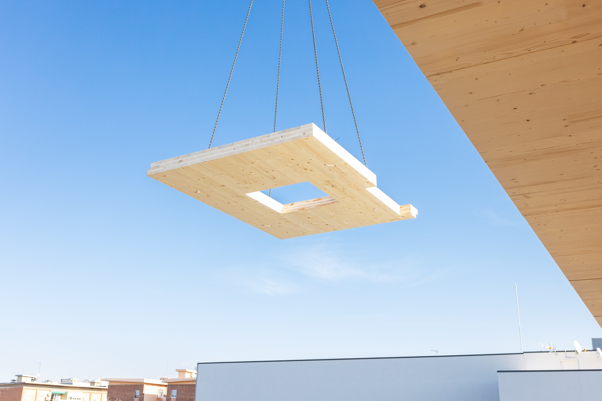 Esta promoción, realizada junto a los equipos de arquitectura Oikosvia Arquitectura y Fabregat, estará compuesta por 1.103 piezas de madera hechas previamente en fábrica, con material proveniente de explotaciones forestales sostenibles.