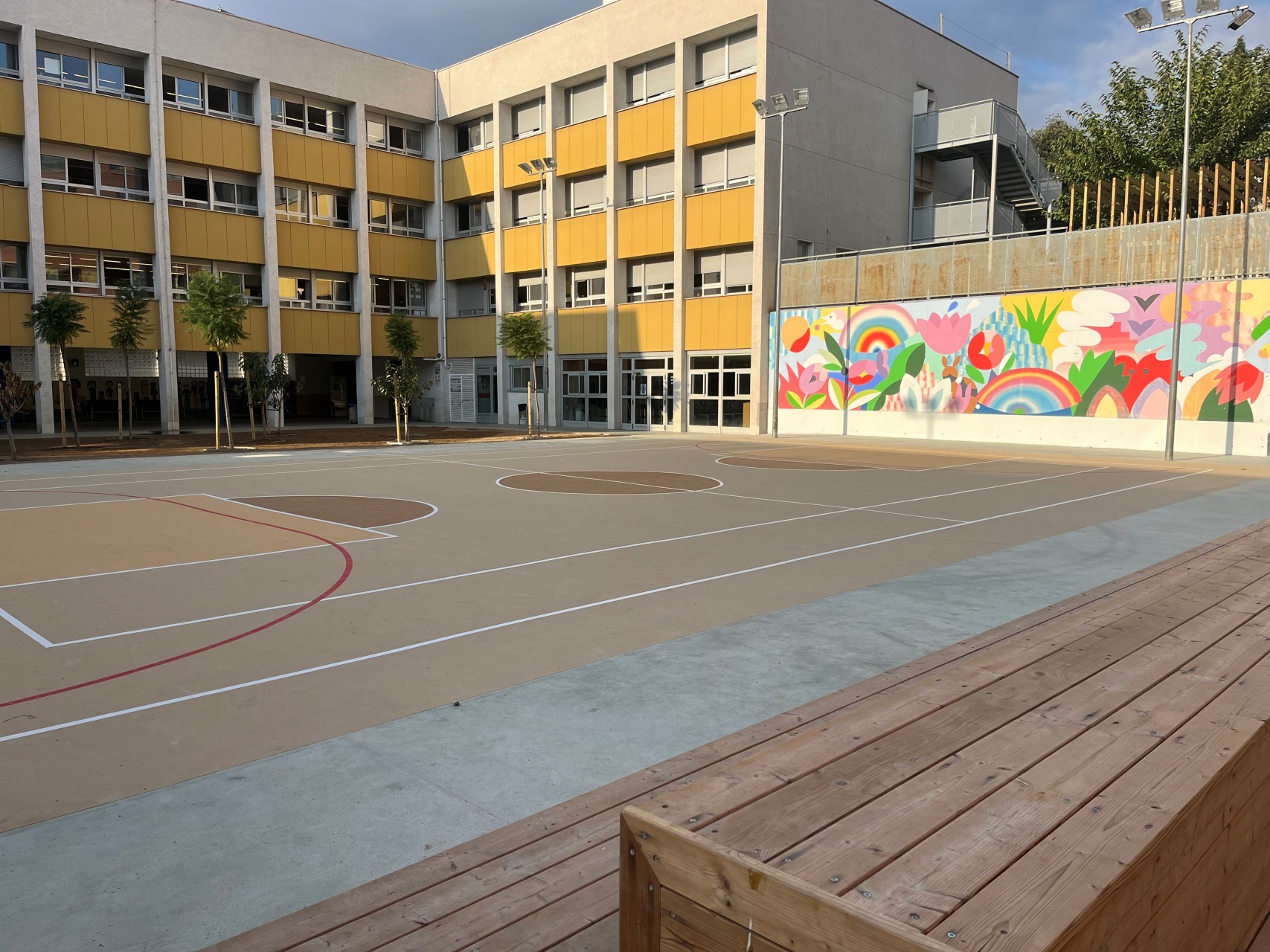 Constraula ha realizado las obras de renovación de patios de las escuelas Mercè Rodoreda, Elisenda de Montcada y CEE Sant Joan de la Creu de Barcelona.