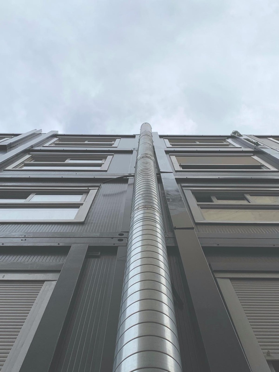 - Desmontaje parcial de la chimenea de la cocina para prolongarla hasta la nueva cubierta.
