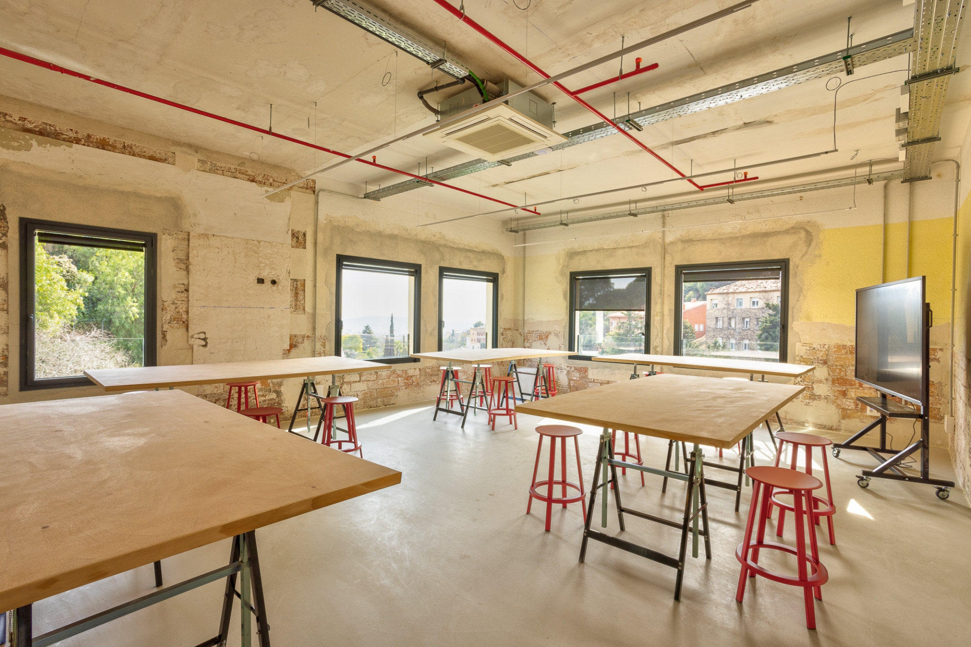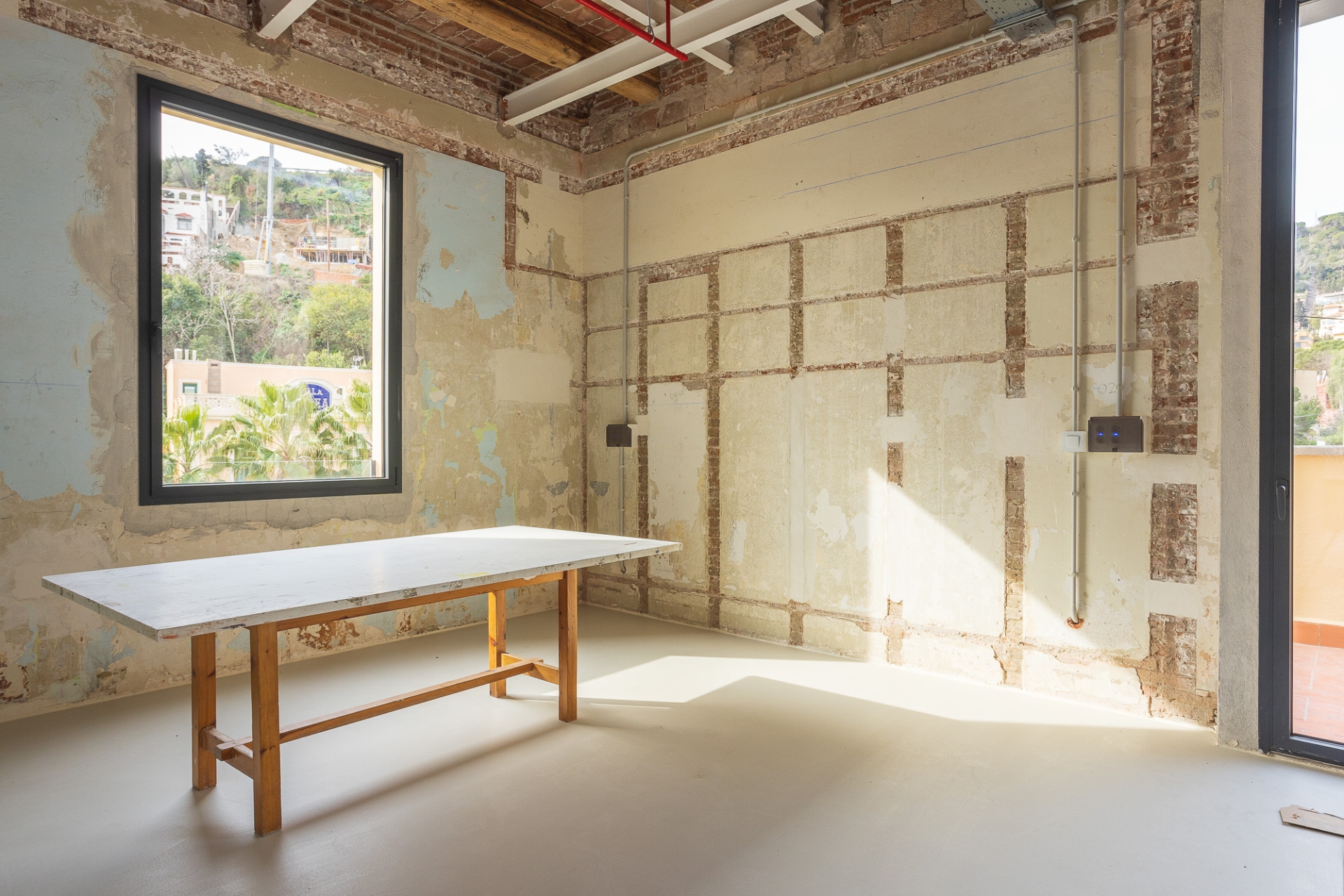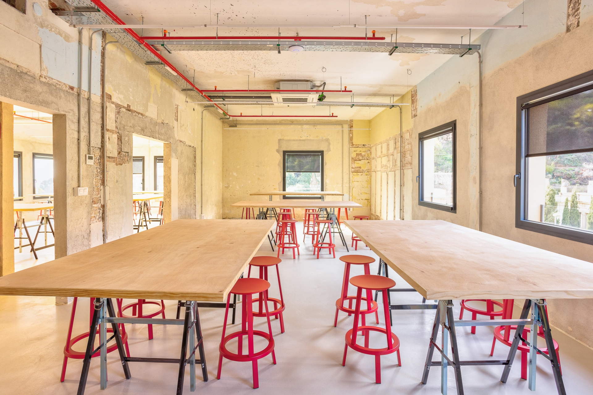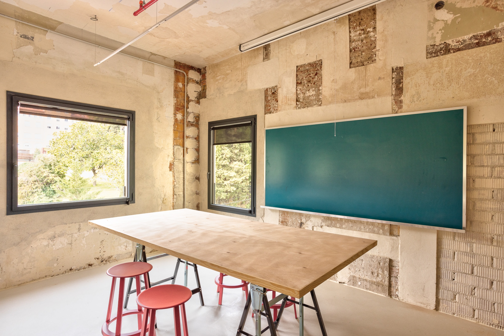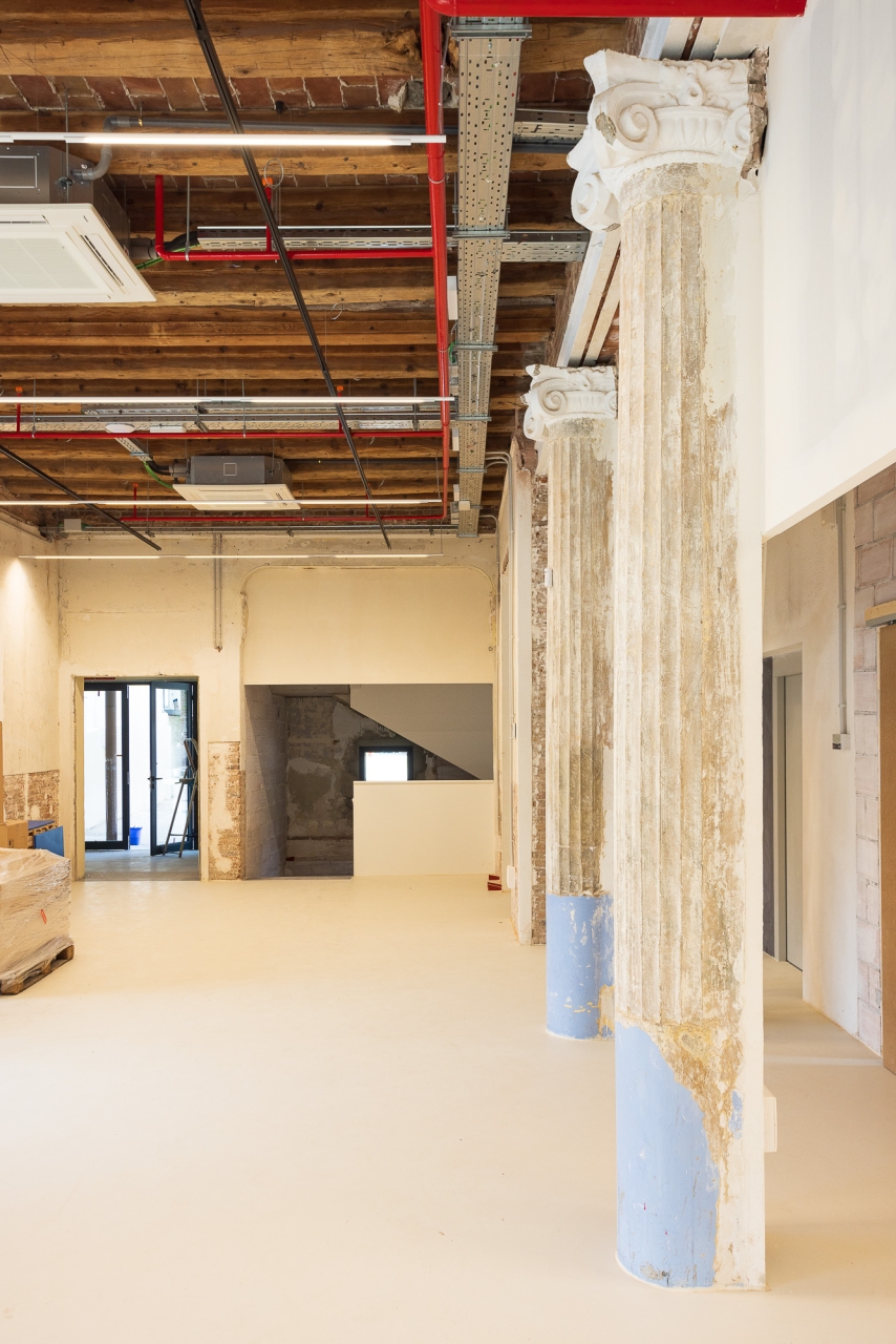 La reforma interior ha estat una intervenció arquitectònica mínima concebuda com un espai en transformació contínua, adaptable a les necessitats acadèmiques que puguin anar sorgint. L’equip responsable de l’obra ha explicat que l’acabat inacabat de les parets ha estat una feina molt rigorosa. “Cap racó és casual. Cada paret, cada esquerda i cada cantonada respon a un perquè. I el més important és que els professionals de l’escola Eina se senten identificats amb el resultat final.”