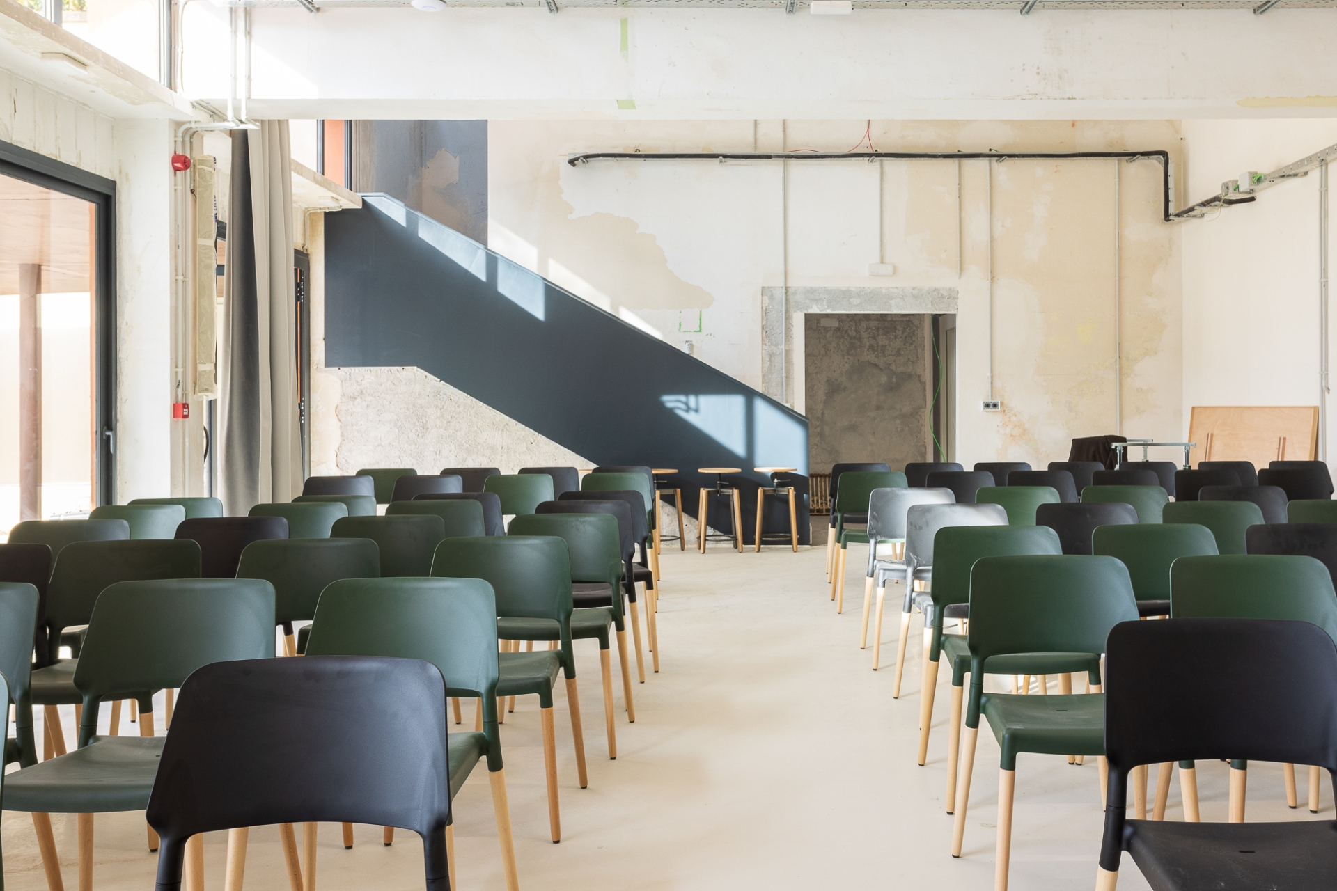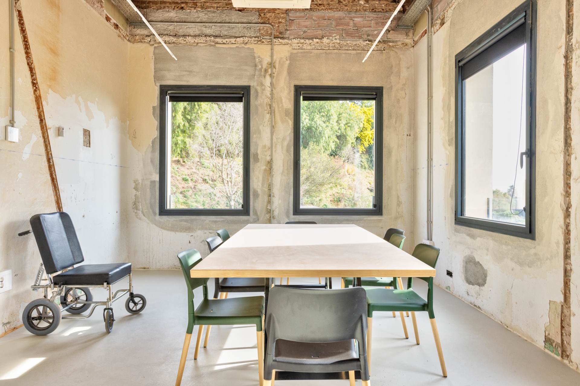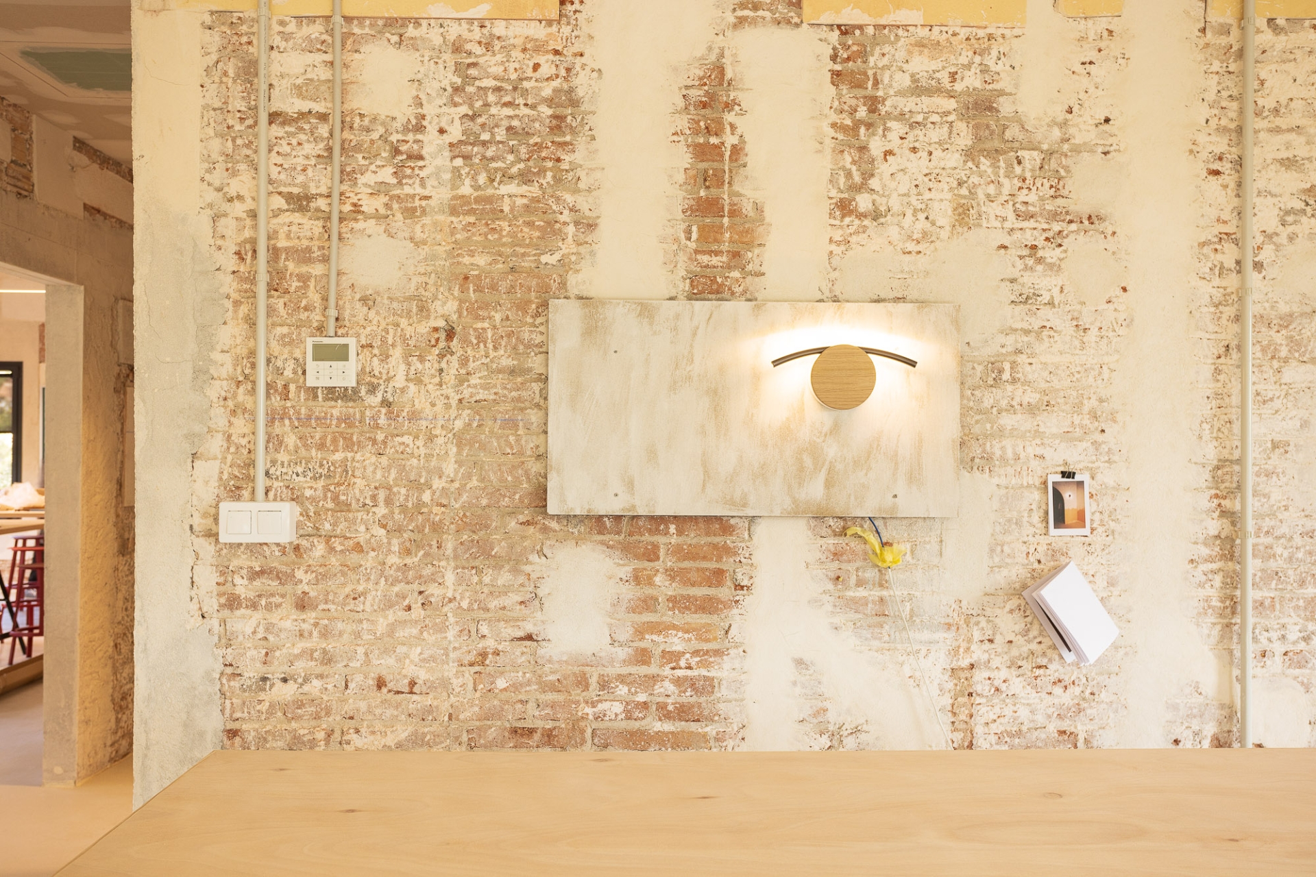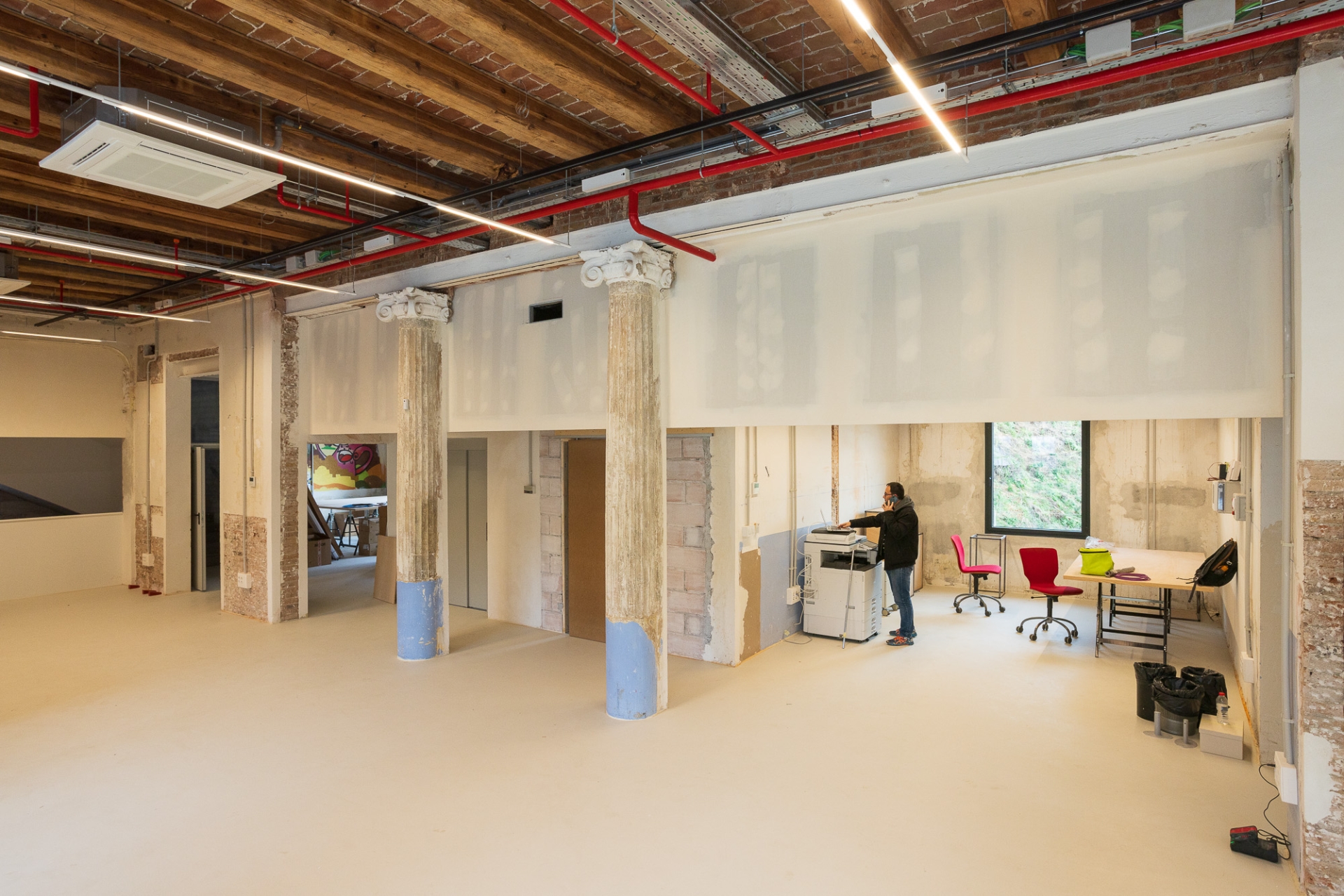 La reforma interior ha estat una intervenció arquitectònica mínima concebuda com un espai en transformació contínua, adaptable a les necessitats acadèmiques que puguin anar sorgint. L’equip responsable de l’obra ha explicat que l’acabat inacabat de les parets ha estat una feina molt rigorosa. “Cap racó és casual. Cada paret, cada esquerda i cada cantonada respon a un perquè. I el més important és que els professionals de l’escola Eina se senten identificats amb el resultat final.”