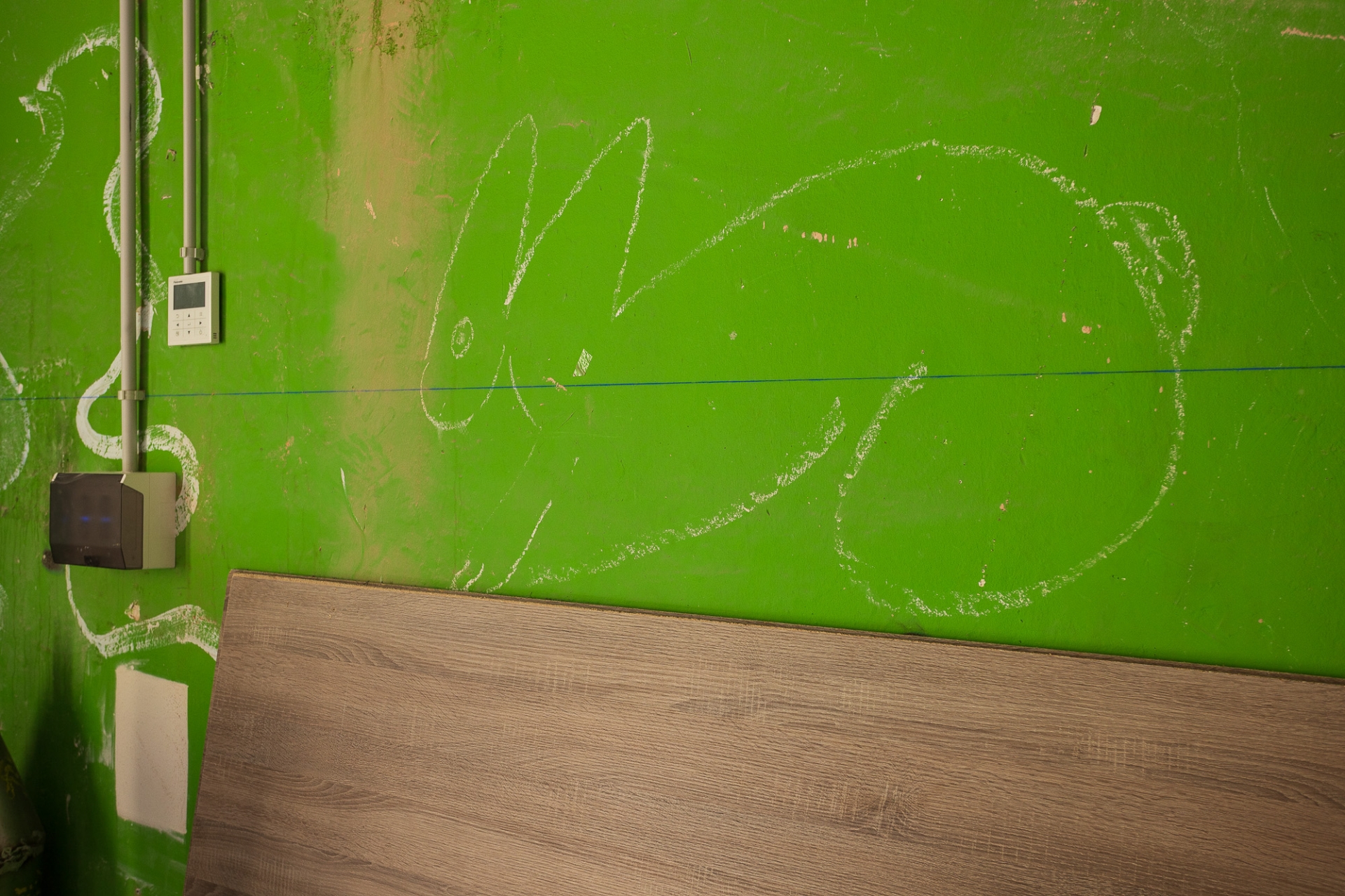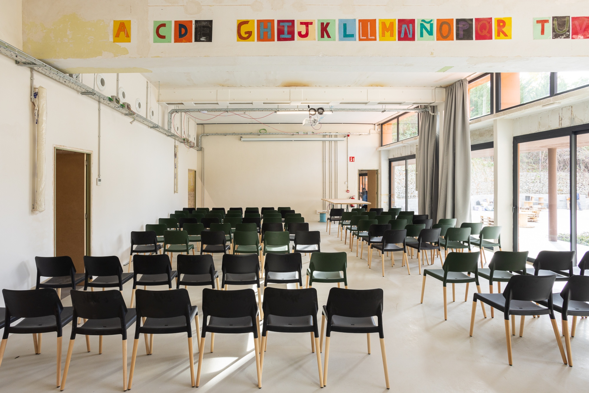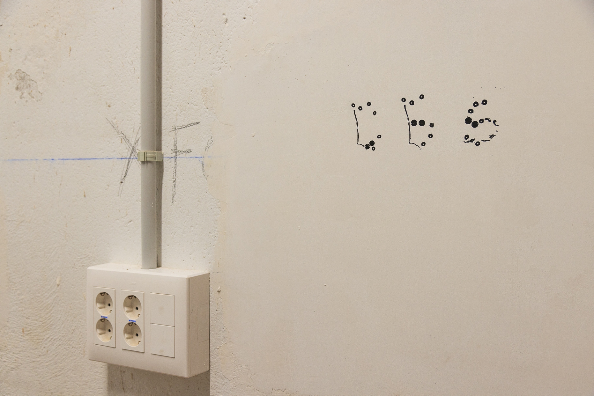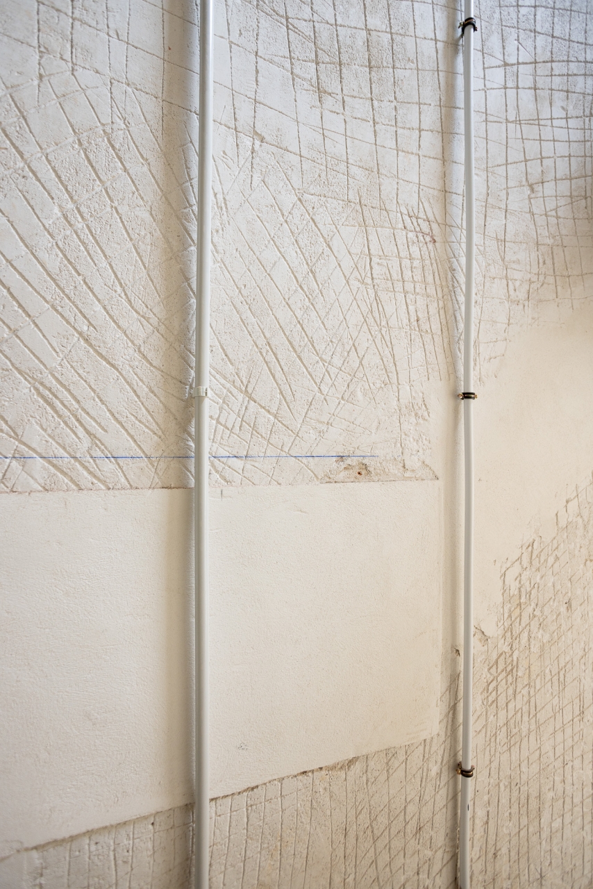 Alguns objectes trobats en iniciar les obres – com a dibuixos a les parets i retallades de cors enganxats als murs originals – es conserven com a petjades del passat. De la mateixa manera, s’han deixat alguns senyals recents com ara les marques que pintaven els operaris per anar deixant constància de l’avenç dels treballs o la línia blava que servia de guia per marcar el nivell. D’aquesta manera, els que recorrin els passadissos d’ara endavant podran fer una immersió total en el procés constructiu i impregnar-se d’un ambient disposat per a la creativitat.