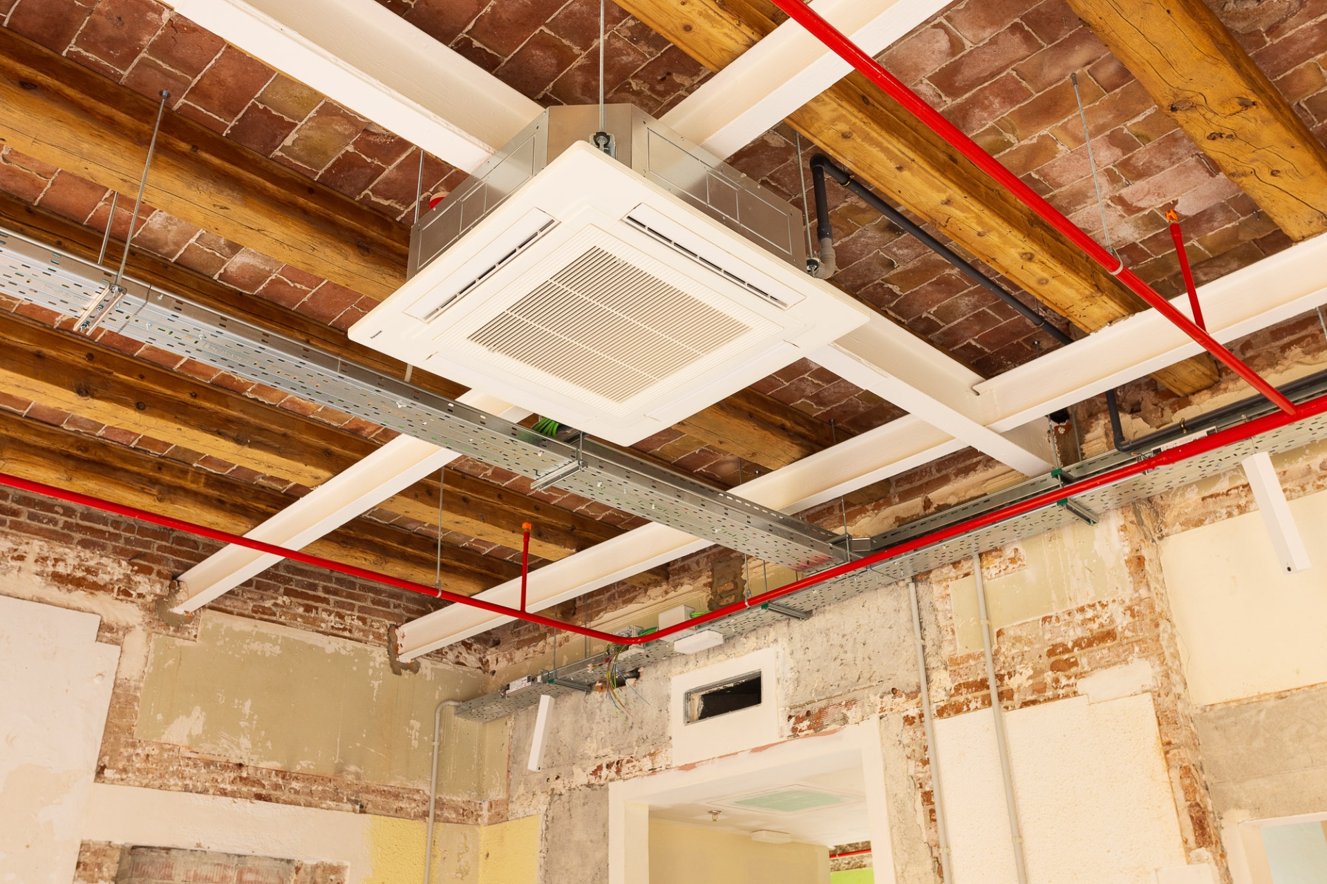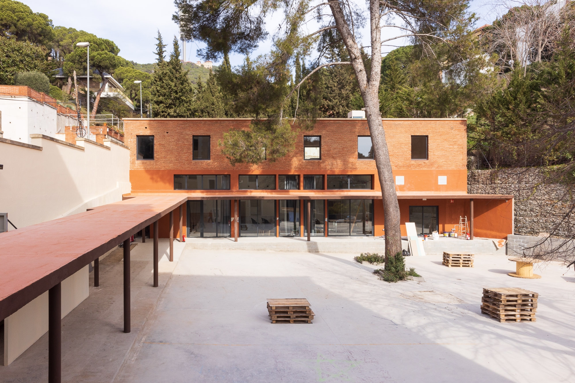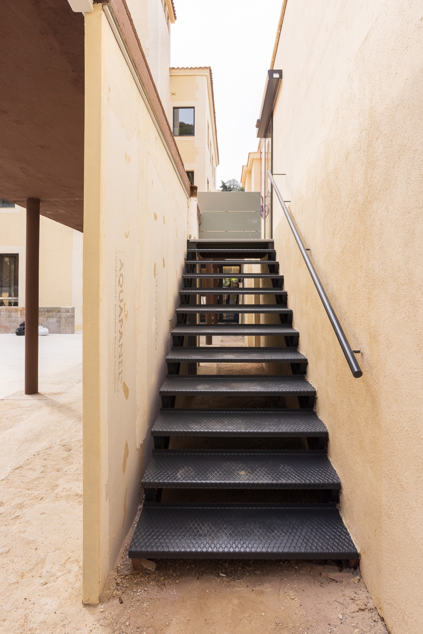 Cada planta compta amb ascensor i lavabos i a més s’han reformat i ampliat les escales per complir la normativa actual. Amb la renovació de totes les instal·lacions elèctriques, d’aigua, climatització, telecomunicacions i contra incendis es completen els treballs estructurals dels edificis per continuar amb el pati central on s’ha executat un mur perimetral i s’ha obert una sortida d’emergències.