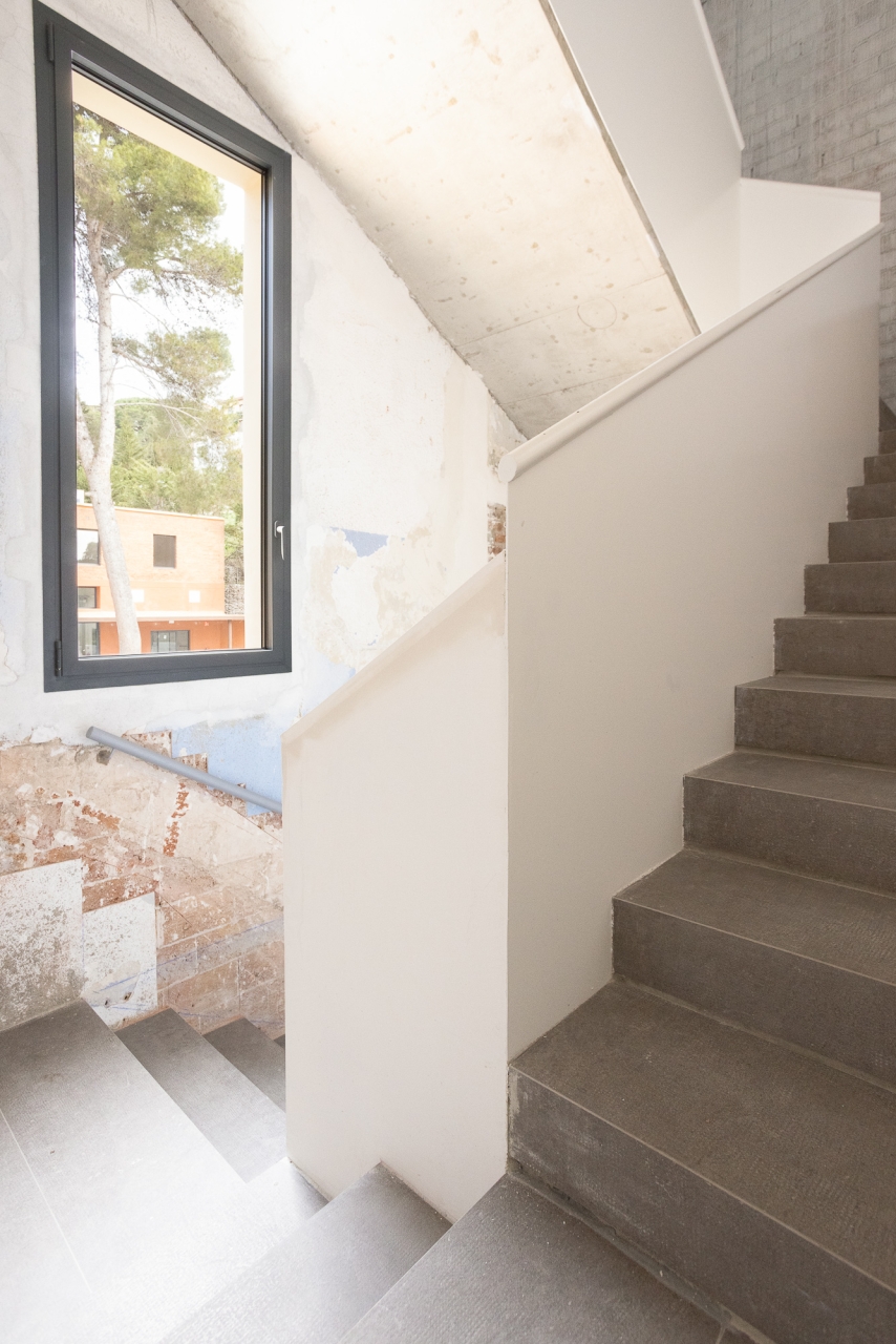 Les façanes de les edificacions, que oferien un aspecte lúgubre degut a l’abandó i les contínues ocupacions, han estat completament restaurades. Tant al primer edifici, compost per quatre plantes, com al segon, per dues, s’han eliminat les reixes exteriors i s’han instal·lat finestres i portes d’alumini que ara donen pas a estades molt lluminoses i diàfanes. Quant a les bigues de fusta, es va fer una anàlisi de les patologies i el grau de resistència per decidir el tipus de reforç més adequat en cada cas. També s’han reparat i, en alguns casos, han reconstruït les cobertes i s’ha instal·lat paviment de formigó amb un acabat de color.